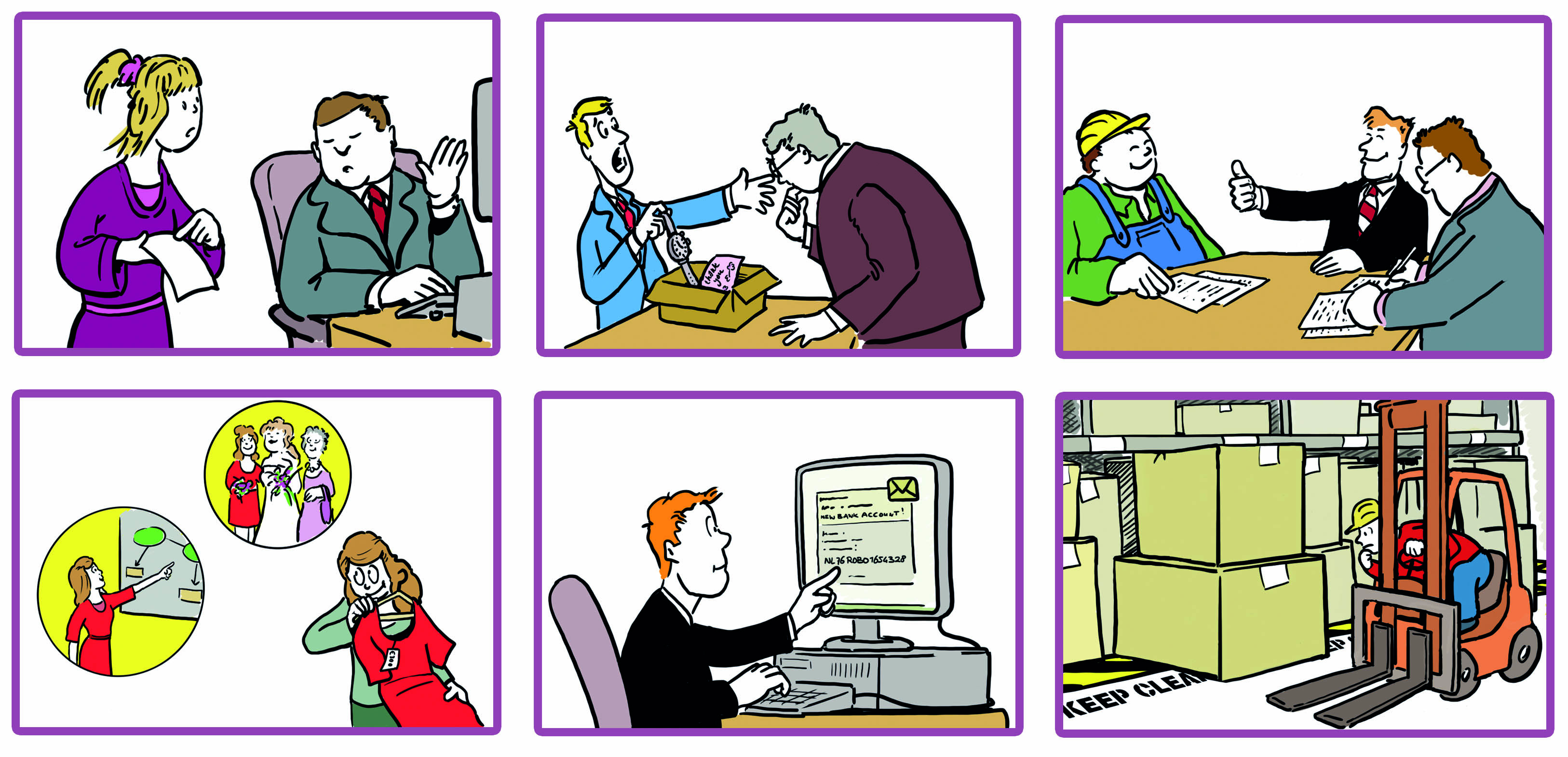 Illustraties voor e-learningmodule voor Aalbers Industries (selectie). Opdrachtgever: Tinqwise, 2017.