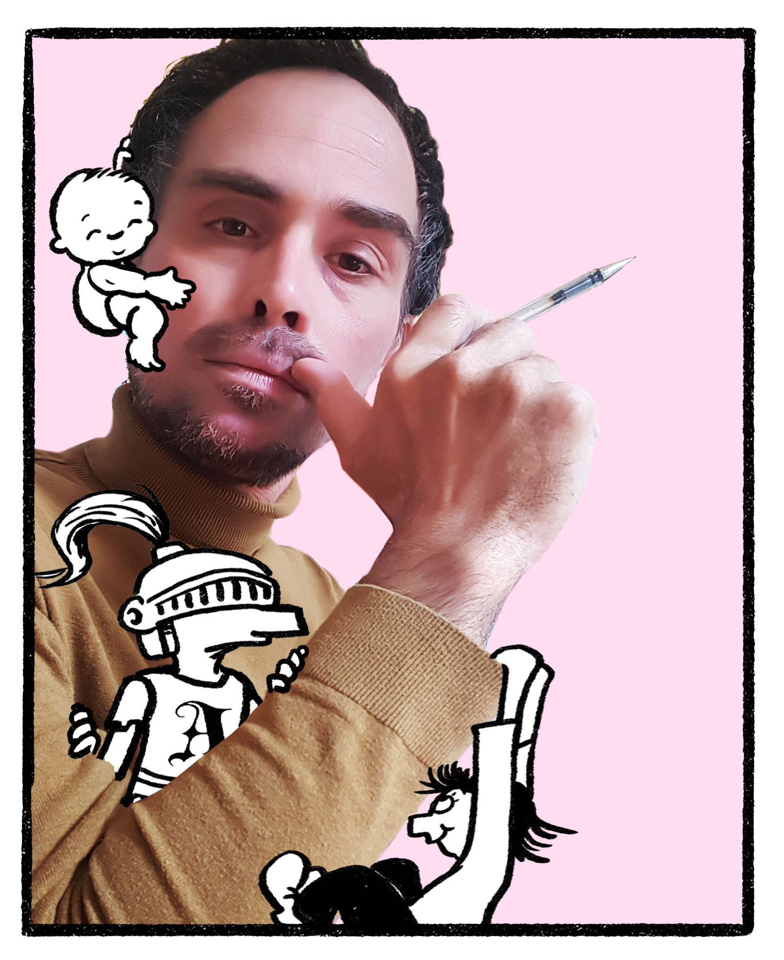 Dan zit u bij mij goed. Ik (1977) ben een veelzijdig illustrator, scenarioschrijver, animator, en schrijver. Mijn achtergrond in wetenschap, informatica en onderwijs is zeer nuttig voor veel van mijn teken- en schrijfopdrachten: ik doorzie direct de materie en begrijp wat er aan de lezer overgebracht moet worden. Ik werk in een luchtige, heldere stijl, op papier en digitaal. Mijn voorbeelden zijn o.a. Tomi Ungerer, Carl Barks, Osamu Tezuka, Saul Steinberg, Hergé, Herr Seele, Quino, Ronald Searle en Moebius.